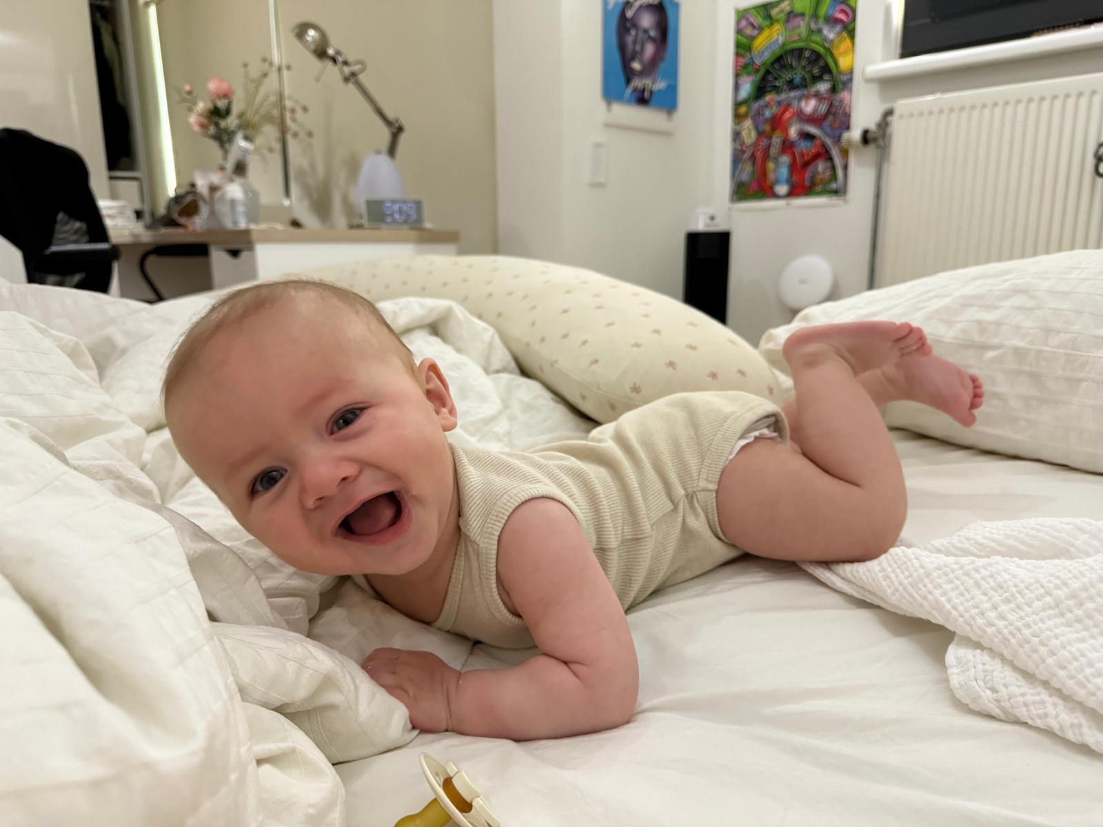 Ik kan al heel goed dingen vastgrijpen en vocaal ga ik ook wel lekkerrrrr (ik kan namelijk een rrrrr geluid maken en dat vinden die dames daar heel knap voor mijn leeftijd).