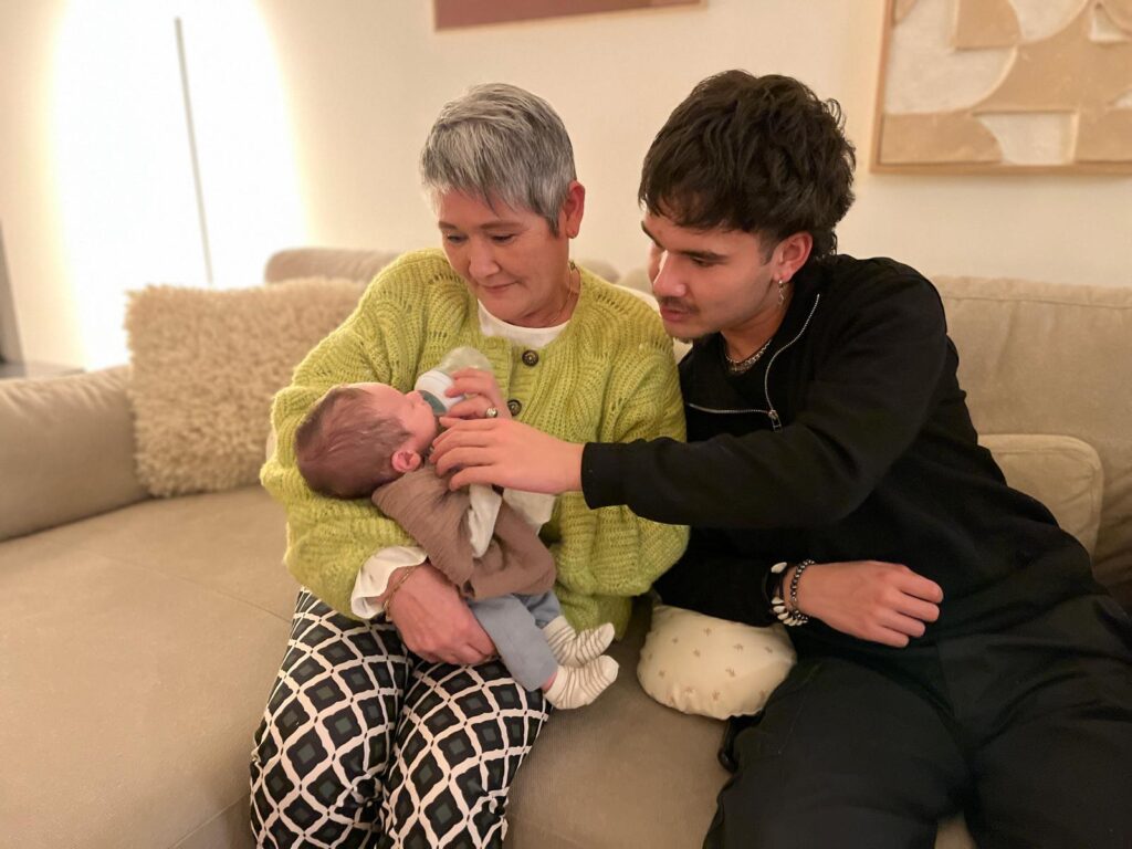 Maar dat was gelukkig snel over toen ie van oma een flesje kreeg.